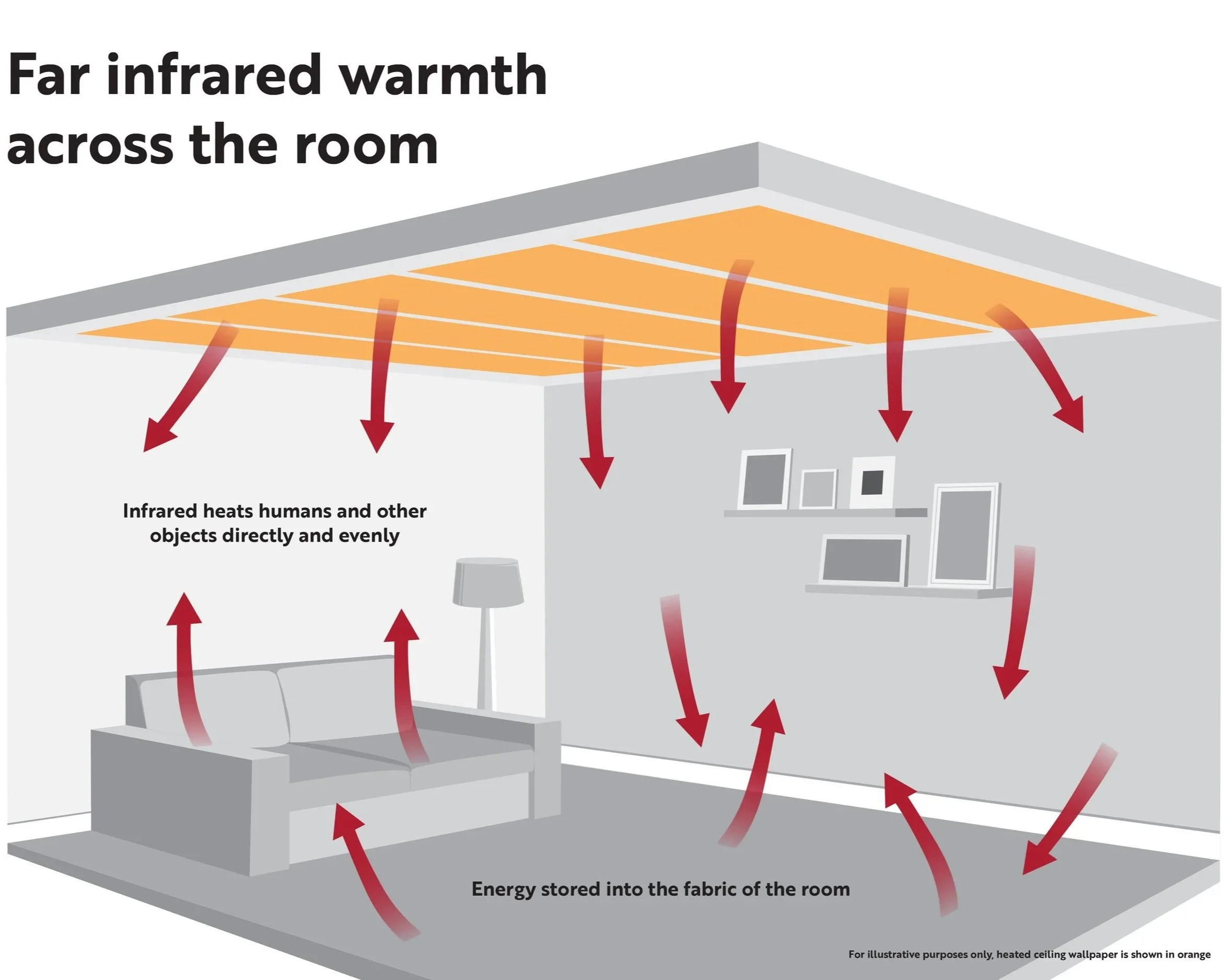 Humans feel NexGen’s infrared directly – like feeling gentle sunshine on your skin – so we don’t rely on heated air to feel warm. It’s comfortable with a lower air temperature – which means that we don’t use as much energy.